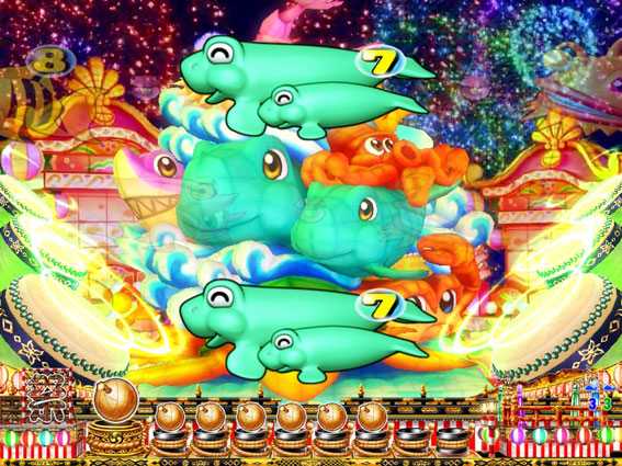 | リーチの種類 | ・ウリンチャンス(全モード共通) ・豪華絢爛リーチ(海・ジャパンモード) ・横笛リーチ(ジャパンモード専用) ・和太鼓リーチ(お祭りモード専用) ・打ち上げチャレンジ(お祭りモード専用) |