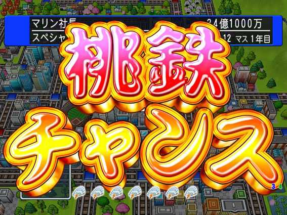 1R目開始時に桃鉄チャンスが発生すれば保留連の期待大。サイコロを振って、最終的にSP駅へ到着すれば保留連ゲットだ。なお、桃鉄チャンスには下記で紹介しているように、多彩なチャンスアップ演出が存在。また、背景が夏(画面下部に「チャンス!」と表示される)だった場合もちゃんす期待度アップとなる。