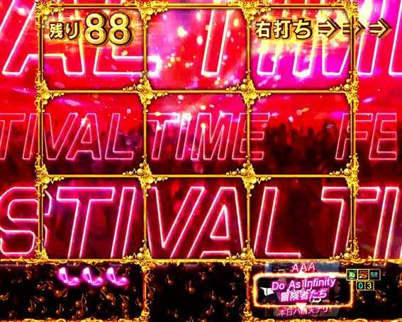 | 変動中演出 | ・アクロバット予告(SU4) ・Aメロ変動(赤背景or赤ボタン) |