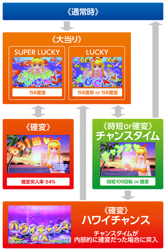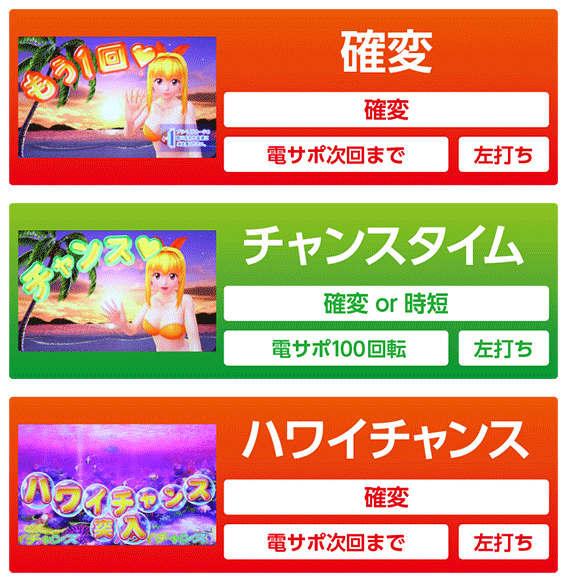 | 変動中演出 | ・アングル予告(マリンモード) ・ステップアップ予告(ハワイモード) |
