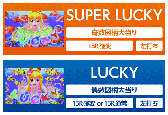 リーチ後にマンボウが出現。マンボウの種類や、ボタン押しで発生するアクションによって期待度が変化。ちなみにマンボウが出現せずにスーパーリーチに発展した場合は確変大当り濃厚。