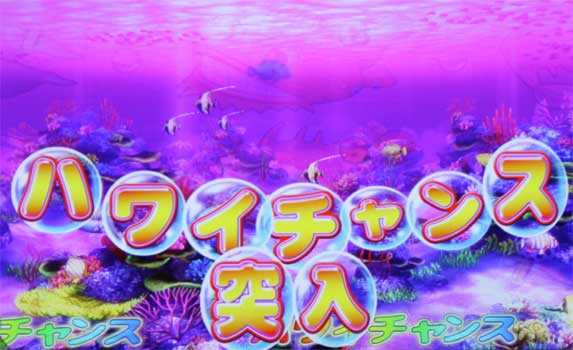 偶数図柄大当り時のラウンド中に発生の可能性あり。宝箱の中に財宝があれば確変昇格。宝箱から魚群が出現すれば確変昇格濃厚。ハワイモード限定。