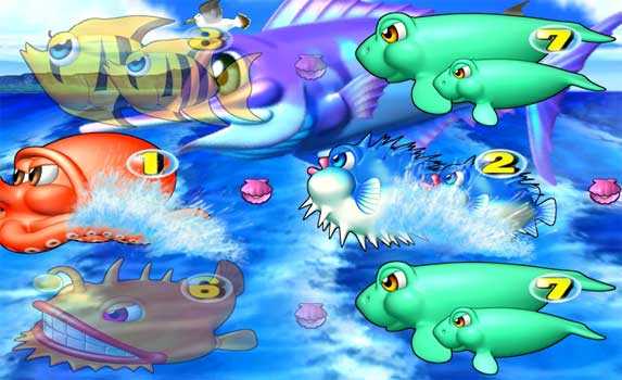 ラウンド終了時のエンディング画面で金魚群が出現すれば保留内大当り濃厚。