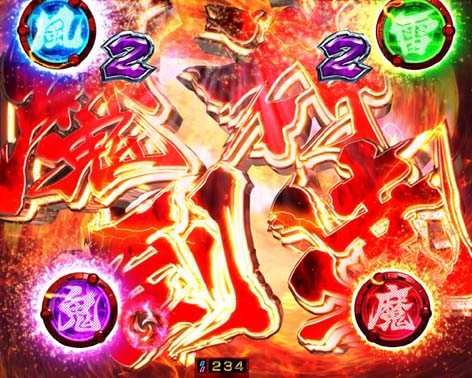 画面四隅の風・雷・鬼・魔アイコンが点灯するほどギガ鉄拳ギミック発動のチャンス。魔神到達で激アツだ!