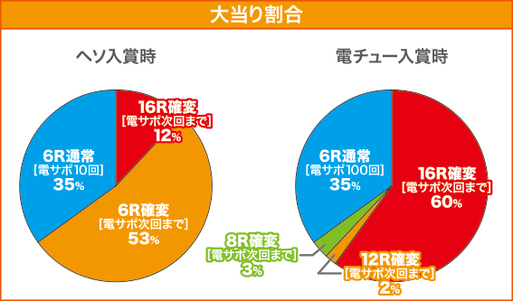 ★確変・TAG BATTLE RUSH中はバトル勝利の約90%が16R大当り。バトルに負けても6R大当り+100回転の時短突入!