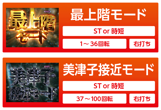★ST中と時短中の演出は共通で、どちらも「最上階モード&美津子接近モード」となる。