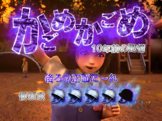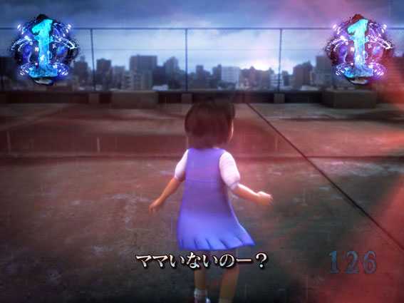 「かくれんぼ」や「かごめかごめ」から発展。期待度は高めで、屋上へ向かった郁子が美津子と遭遇すると大当りとなる。階段などに赤いバッグが出現するとチャンスアップだ。