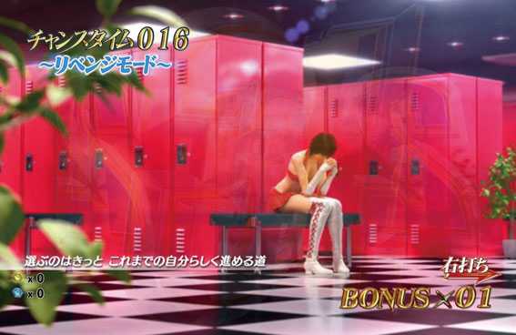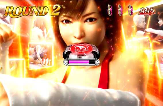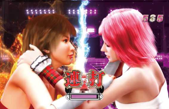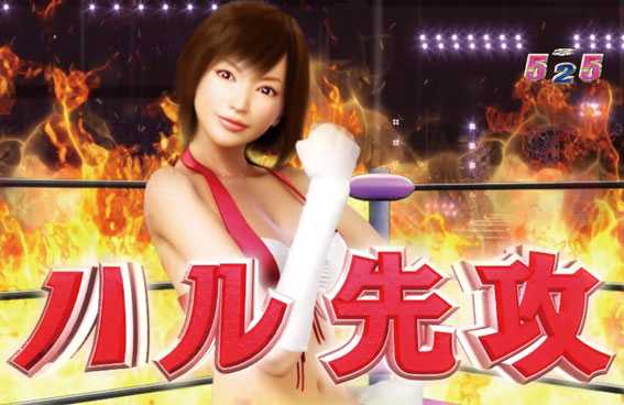 様々な演出から発展する、大当りに絡みやすい重要リーチ。ボタン連打でポイントをアップさせ、ポイントが10000に近づくほどチャンス(10000到達なら超激アツ)。リーチの最後にハルがフライングボディアタックを決めれば大当りとなる。