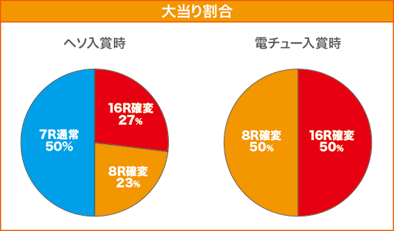 | 確変突入率 | ヘソ:50% 電チュー:100% (転落抽選あり) |