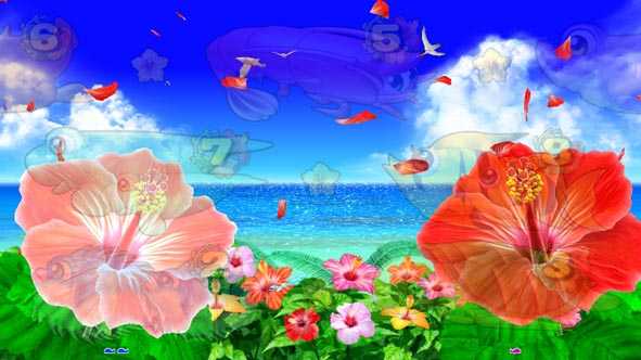 ラウンド数表示(画面左上)周りのハイビスカスが光れば確変昇格!
