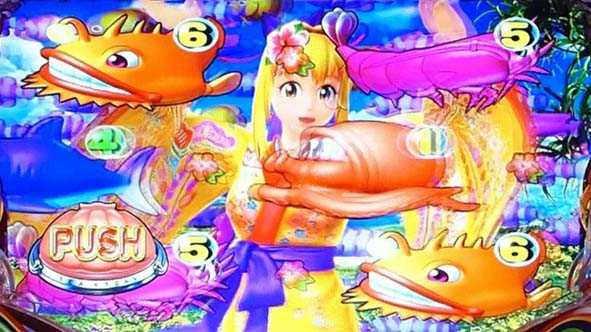 ★新枠の「マリンシェル」には可動式のパールボタンを搭載。ボタンのパールが出現すれば大チャンスに!!