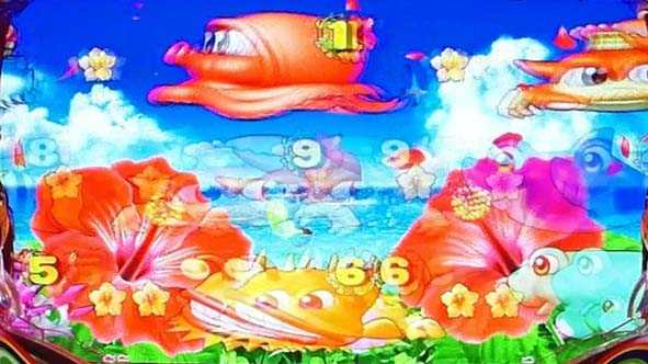 同一図柄が枠内に3つ止まるチャンス目が出現。今作ではモードによって役割が異なり、海モードは出現すればスーパー発展濃厚、マリンモードは保留先読み予告発展のチャンス、沖縄モードは連続するほど期待度アップ、ハイビスカスモードは出現すれば激アツ、となっている。なお4連続した場合は超激アツだ。