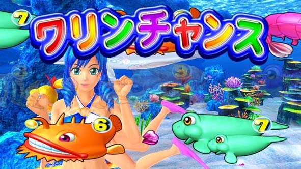 マリンちゃんとイルカが中図柄を応援する、今作からの新リーチ。シングル&ダブルライン両方で発生の可能性あり。