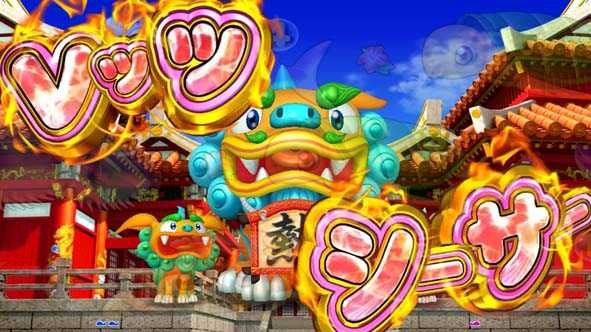 レッツシーサー図柄停止などから発展。パパシーサーが息を吐き出して大当りを狙う。