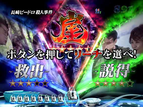 右打ち消化の電サポ付き確変モード。図柄がテンパイすると追い込みバトルor一撃決着に発展し、犯人を説得するかボタンPUSHに成功で15R確変大当りとなる。なお、一撃決着へは3or7図柄テンパイ時のみ発展する可能性があり、しかも通常大当りの可能性がないためアツい。