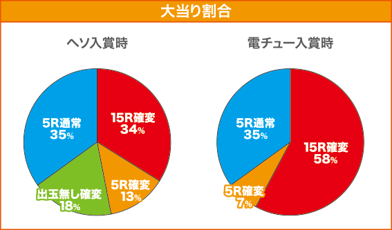 偶数図柄が揃うと発生する、5Rの通常or確変大当り。ラウンド中はレバーを引く演出が発生すれば確変昇格のチャンスとなる。