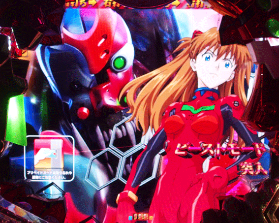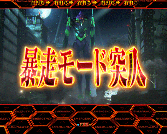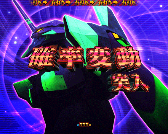 偶数図柄揃い直後に発生する確変昇格演出。ボタンPUSHでEVAハンド役物が巨大コアギミックを破壊すれば15R確変大当りとなる。昇格濃厚となる演出パターンも存在する!?