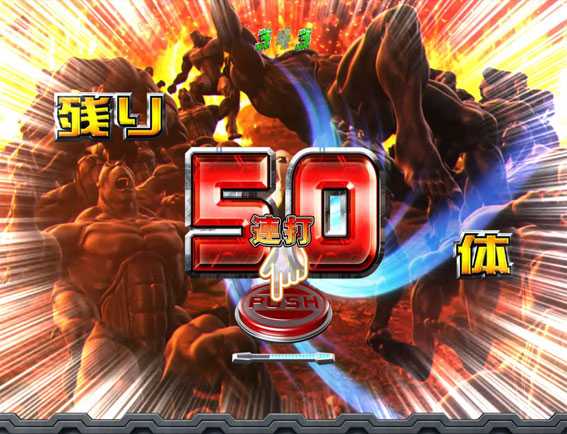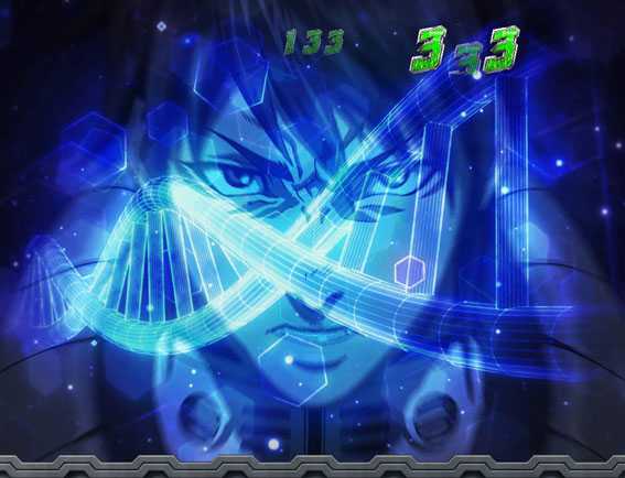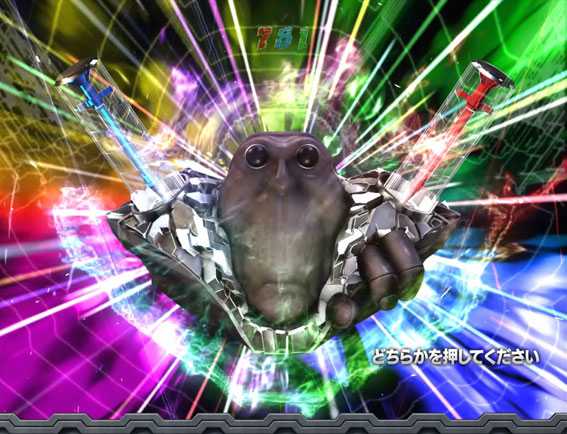多くの大当りに絡むボタン演出。敵撃破数が増えるほどアツく、8000オーバーで人為変態ギミック作動濃厚。回想ムービーが発生したり、語呂合わせ数字(4649「よろしく」など)が出現すればさらにチャンス!?