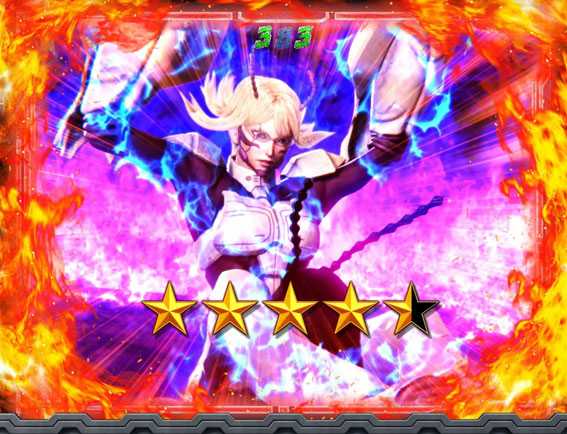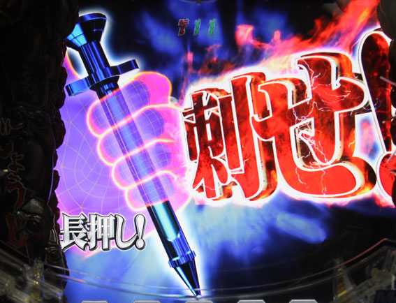 ボタン連打でエフェクトの色が変わるほどチャンスとなる特殊リーチ。タイトルの色にも注目!