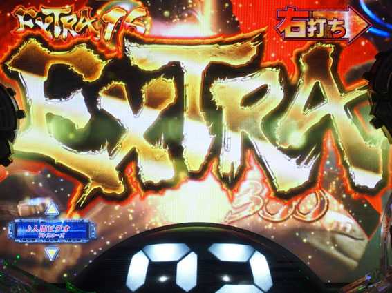 通常時に7図柄が揃う、または確変中の図柄揃い直後にガンツの採点が100てんだった場合に発生。16Rの確変大当りで、16R消化後は電サポ確変+α「EXTRA」に移行する。本機の醍醐味なので、是非とも目指してもらいたい。