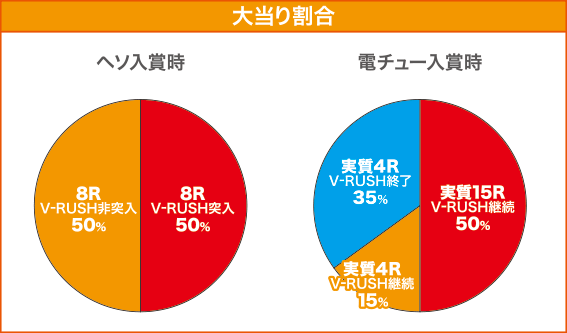 ★V-RUSH中は全大当りの50%が出玉約1950個の15R!