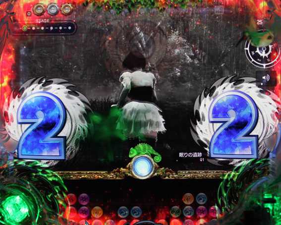 | 図柄アクション | ■縮小変動・・・7% ■縦変動・・・7% ■奥から変動・・・7% ■逆回転・・・大当り濃厚 ■トータル・・・9% |