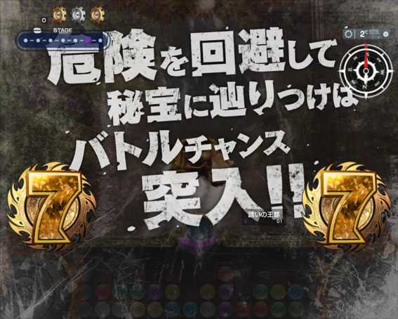 危機を回避して秘宝まで辿り着けば大当り。滞在ステージによって迫りくる危機の内容が異なるが、信頼度は変わらない。