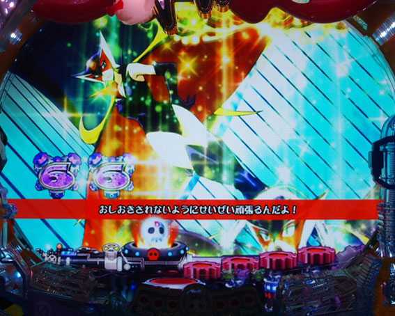 大当り告知発生後は、右打ちしてメガパトが光るか否かで大当りの種類が変化。基本的にメガパトが光ればSUPERおしおきモード突入or継続となるが、電サポ中の奇数揃い時はメガパトが光らなくてもSUPERおしおきモードが継続する。