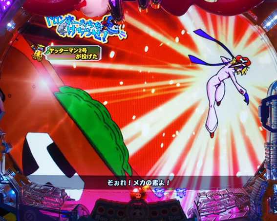 ドロンボーメカが負ければ大当り。上記以外にも、ヤッターペリカンリーチが存在する。ヤッターメカは全部で9種類登場するが、とりわけヤッターキングがアツい。また、チャンスアップも随所に出現するので要チェックだ。