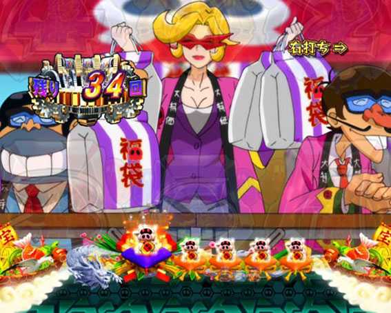 誰もが知る人気アニメとのタイアップ機。サブタイトルにもあるように、ドロンボー一味が主役となって予告やリーチで大活躍する。スペックは確変ループのミドルスタイプだが、電サポ中は全大当りの半数が出玉約2400発の16Rとなるなど、爆発力にも優れている。