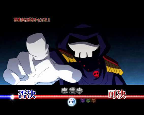 通常時に発生した場合は6R確変or通常となり、大当り終了後にドクロベエ指令ゾーンへ突入。電サポ中の発生は基本的には6R通常だが、復活パターンが発生して確変となる可能性もある。