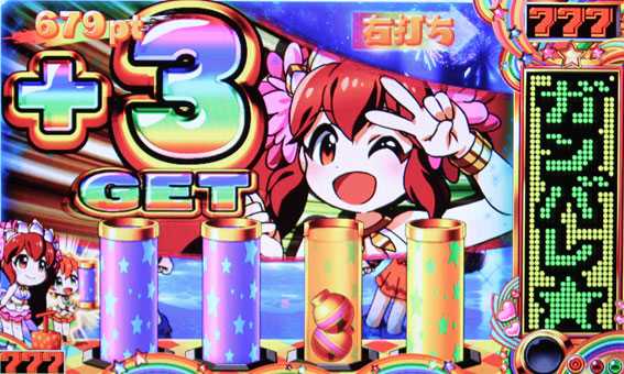 回転中にボタンアイコンが表示されると発生のチャンス。セクシーなすももちゃん登場で信頼度大幅アップ!