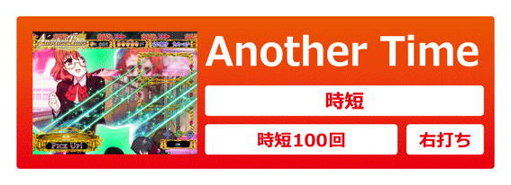 右打ち消化の連チャンモード。時短回数は100回だが、右打ちしていればそれまでにほぼ間違いなくV入賞するため気にする必要はない。V入賞ルートが2種類あり、V Challengeルーレット経由のV入賞は15R&Anoter Time継続濃厚。通常ルートでのV入賞だと、ラウンド中演出をクリアできればAnoter Time継続となる。
