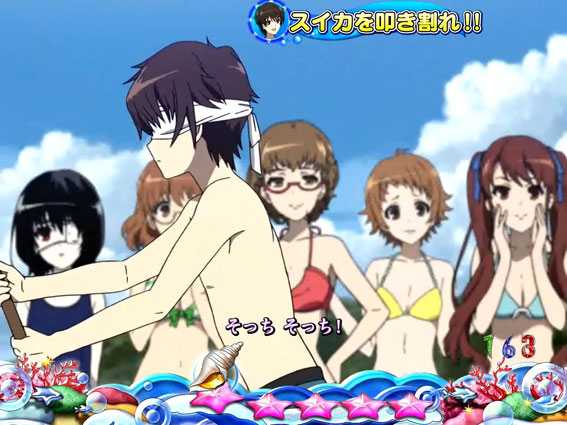 ボタンPUSHでスイカを割れば大当り。応援キャラが女子ならチャンス!?