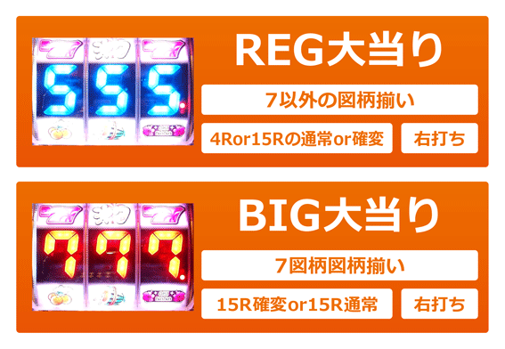 REG大当りは基本的に4R大当りだが、ラウンド終了時に盤面が全消灯すると15R昇格となるぞ!
