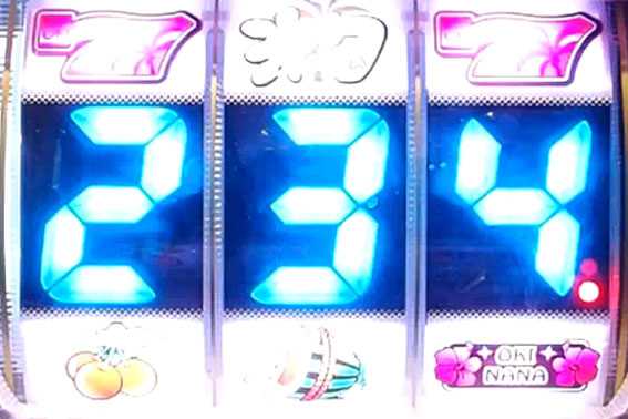 7以外の図柄が揃った直後に、セグが再変動を始めると7揃い昇格、すなわち15R大当り濃厚!