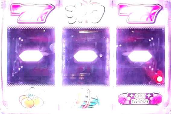 セグがピンクになるSTor時短モードで、電サポは32回転。内部的にSTの場合、電サポ終了後は4回転の電サポなしSTとなるので即ヤメしないように注意したい。大当り発生の流れは「変動開始時に音声発生⇒ボタンPUSH⇒ハイビスカス点灯⇒図柄が揃う」というパターンがほとんどだが、内部的に当たっていればボタンを押さずともハイビスカスは点灯する。