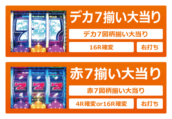 ★デカ7揃いは16R大当りだが、赤7揃いでも16Rの可能性あり。
