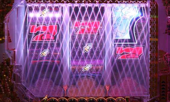 赤7のズレ目停止で信頼度アップ。ズレ目停止時にレーザー導光板が赤く光るとチャンスだ!