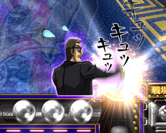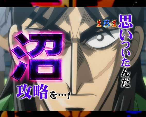 原作で登場するパチンコ台「沼」を、実写で再現したSPリーチ。もちろん、玉が赤い穴に入れば大当りとなる。リーチ中は、チャンスアップや必殺技の発生に期待したい。