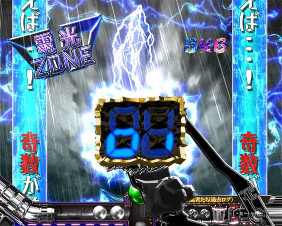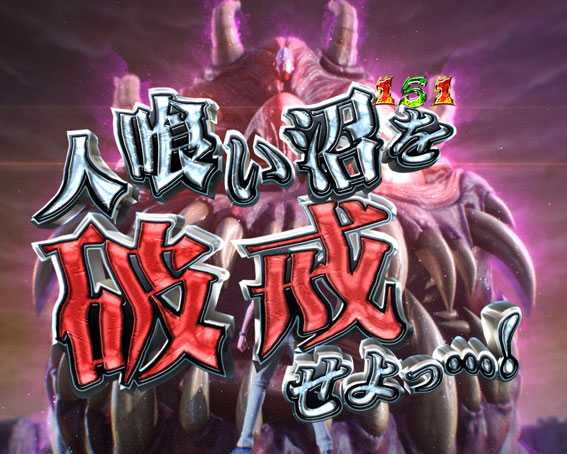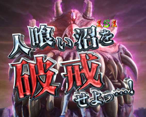 確変or100回転時短。内部的に確変だと、終盤で発生する「最後の審判演出」に成功してSUPER沼RUSHへ移行。時短の場合は「最後の審判演出」に失敗して通常モードに戻る。液晶では、最初はざわモードに滞在し、消化中に開司モードなどの先読みモードへ移行すると信頼度アップだ。なお、ざわモード中はセグ役物で「3」or「7」が揃うと大当りとなる。