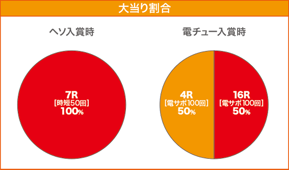 通常時の大当りはすべて7R通常となり、終了後はチャンスタイムに移行する。