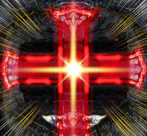全図柄停止時、またはリーチ後などにリールが全消灯すると、ギミックが十字架を形成して擬似連に発展!