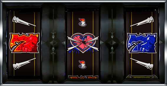 左&右リールが回転している状態で 中リールに「赤7・青7・ドラセグ図柄」が 止まると超激アツ! |