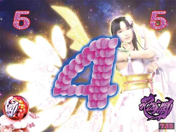 偶数図柄が揃うと発生。4R終了時に「夢想開花」の文字出現で4R確変、導光板がレインボー発光すれば超満開ボーナス昇格。何も起きずに終了すると花爛漫モードへ移行する。
