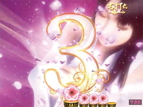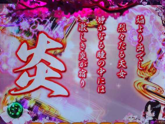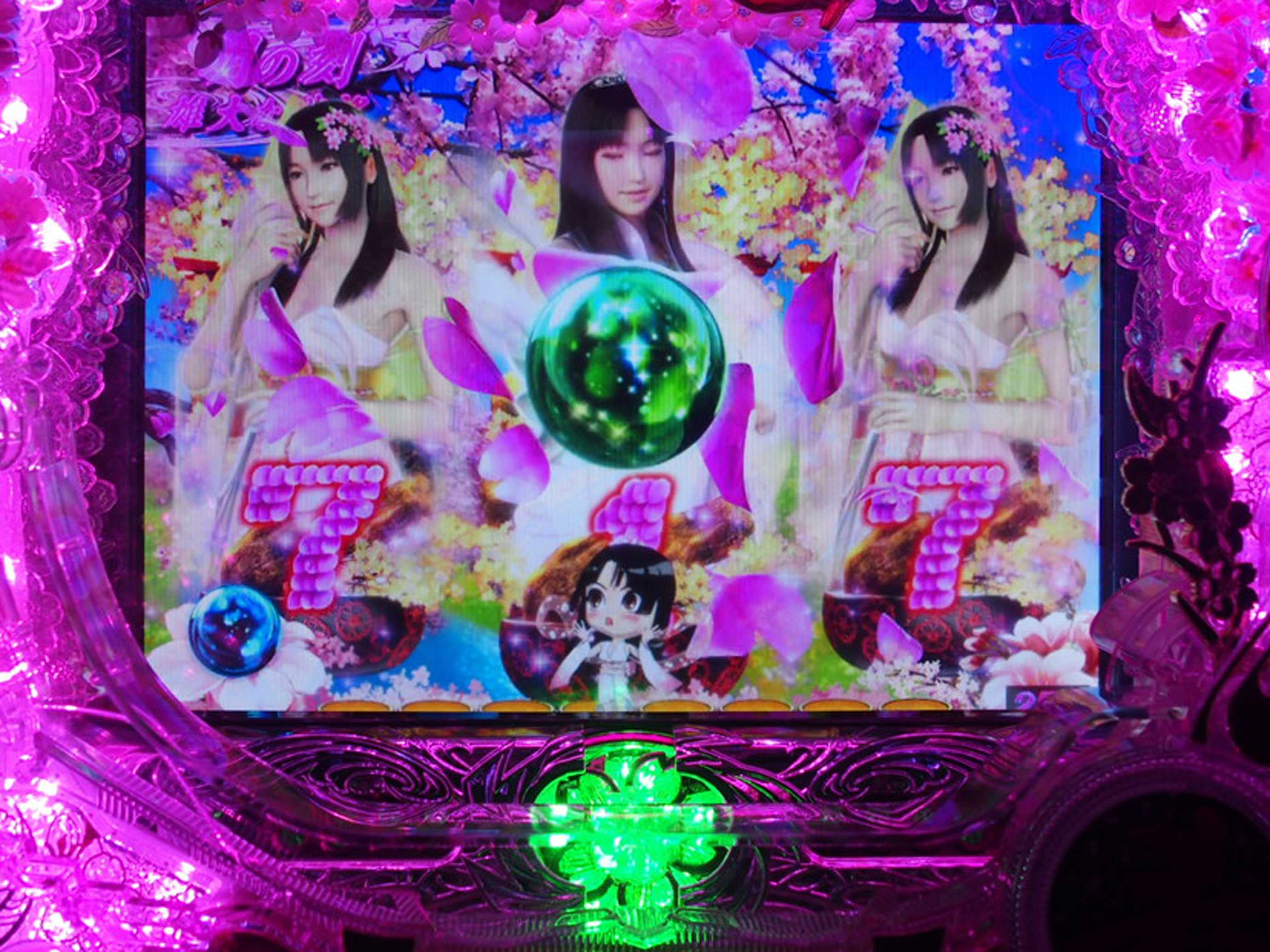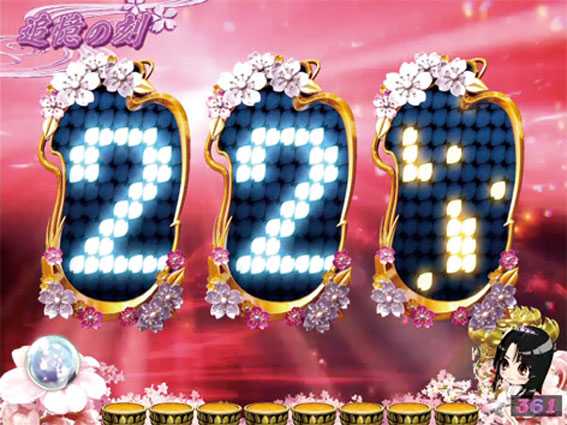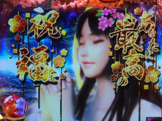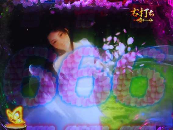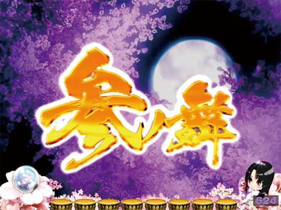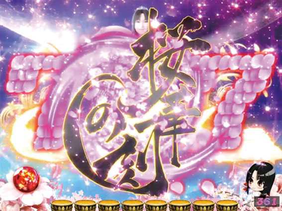 | 桜華の刻予告 | ■「さあ、参りましょう」・・・29.0% ■「花満開」・・・83.0% ■「おめでとうございます」・・・大当り濃厚 |