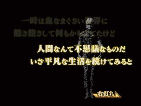・タイトルの色(赤・金) ・テロップの色(赤・金) ・サイコールート発展 ・2.5D背景 |