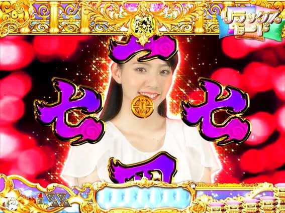 レディーが気合いの一撃で図柄を止めるプレミアムリーチだ!