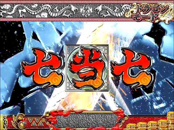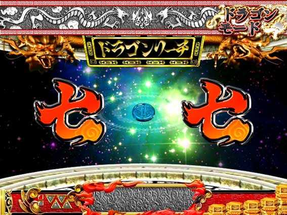 終盤で中図柄がスロー変動するスーパーリーチ。ノーマルリーチから発展すると通常の「ドラゴンリーチ」、図柄テンパイ後にすぐ発展すると「即ドラゴンリーチ」となる。また、看板に書かれている文字が「ドラゴンリーチ」以外だと超激アツだ!