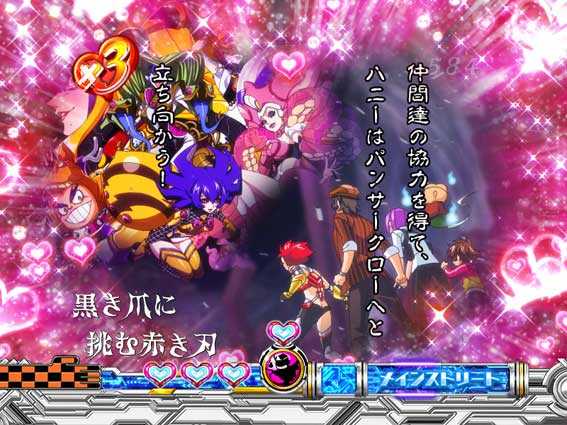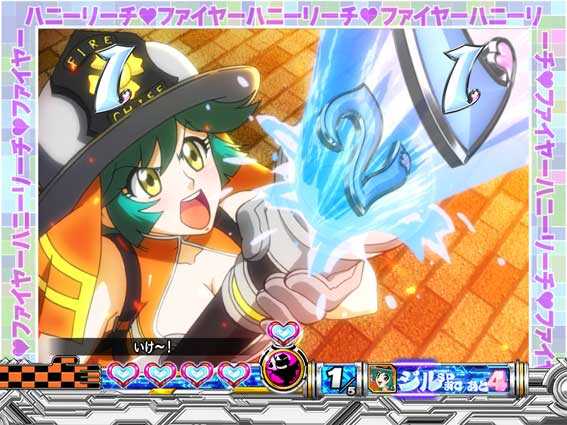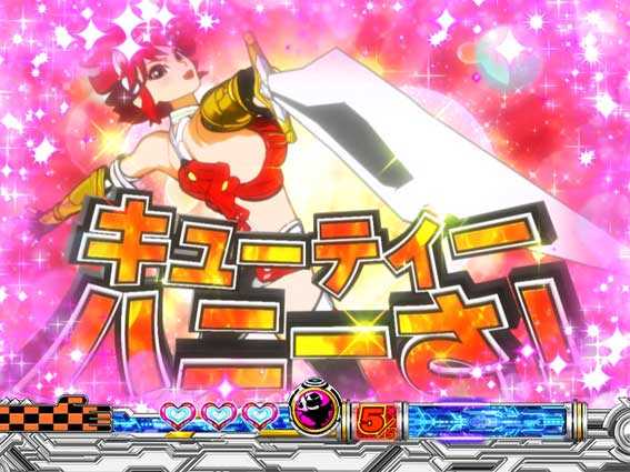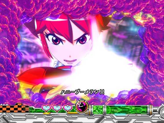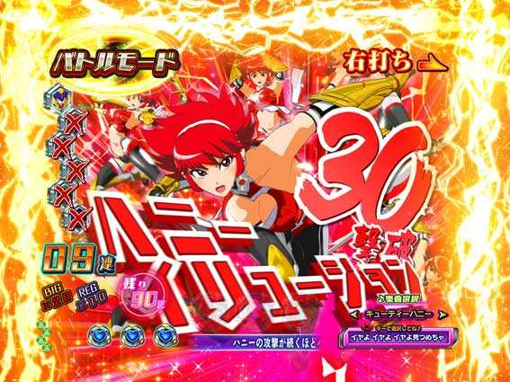 敵怪人とのバトル演出がメインで展開。回転中は、ハニーがザコ敵を多く撃破するほどリーチのチャンスで、図柄がテンパイするとバトルリーチに発展。ハニーと敵怪人の押し合い画面でハニーが優勢なら「ハニー特攻リーチ」or「ハニー必殺リーチ」発展&チャンス。敵怪人が優勢だと「敵怪人襲撃リーチ」に発展する。